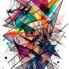 “Caos Criativo” captura o fervor e a energia da criação artística. Cada triângulo, cada linha, parece estar em um estado de movimento dinâmico, com cores vibrantes que saltam da tela. Esta peça representa a beleza encontrada no caos, um retrato visual da mente do artista durante o frenesi da inspiração.