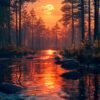 “Encanto das Águas” captura um instante mágico onde o céu se encontra com a terra através do espelho das águas. A lua cheia, um farol celestial, banha a paisagem com sua luz prateada, enquanto o sol poente pinta tudo de ouro e âmbar. A natureza parece suspensa em uma dança delicada entre o dia e a noite, criando um cenário de tranquilidade e encantamento. Esta imagem é uma ode ao equilíbrio perfeito, um momento eterno onde tudo está em paz.