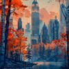 “Outono Urbano Refletido” oferece uma perspectiva única da cidade, ideal para quem deseja trazer um toque de natureza e reflexão para ambientes urbanos.