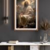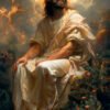 “Vislumbre Celestial” é uma obra que captura a majestosa contemplação do divino. A figura central, envolvida em vestes alvas que refletem pureza e paz, olha para o céu, onde a luz dourada do entardecer promete um amanhã radiante. Anjos emergem das nuvens, em uma dança de alegria e celebração. A expressão de êxtase e maravilhamento no rosto da figura convida o observador a compartilhar do mesmo sentimento de admiração e reverência. A atenção meticulosa aos detalhes nesta peça, desde a textura sutil das vestes até a interação entre luz e sombra, confere uma vida e profundidade que transcende a tela.